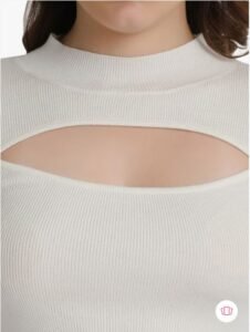 The Putsum Choker Neck Cut Out Fitted Crop Top is a timeless addition to any wardrobe. Its neutral tone ensures it seamlessly complements a variety of outfits while its bold cut-out design sets it apart from basic crop tops. Whether you want to dress it up with your favorite accessories or keep it casual, this top is as versatile as it is chic. It’s the wardrobe staple you’ll find yourself reaching for again and again.