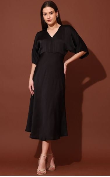 Step into effortless sophistication with the Kimono Sleeve Satin Maxi Dress. Designed to combine timeless elegance and casual wearability, this black solid maxi dress is your new wardrobe go-to for any occasion. Crafted with a luxurious satin fabric, it delivers a subtle sheen that enhances its captivating allure. Whether you’re attending a formal dinner or a stylish cocktail event, this dress is sure to make you shine.